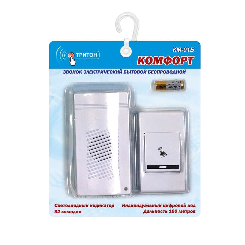 Звонок беспроводной Комфорт 32 мелодии 100м 2AAAх1.5В МОНОМАХ КМ-01Б
