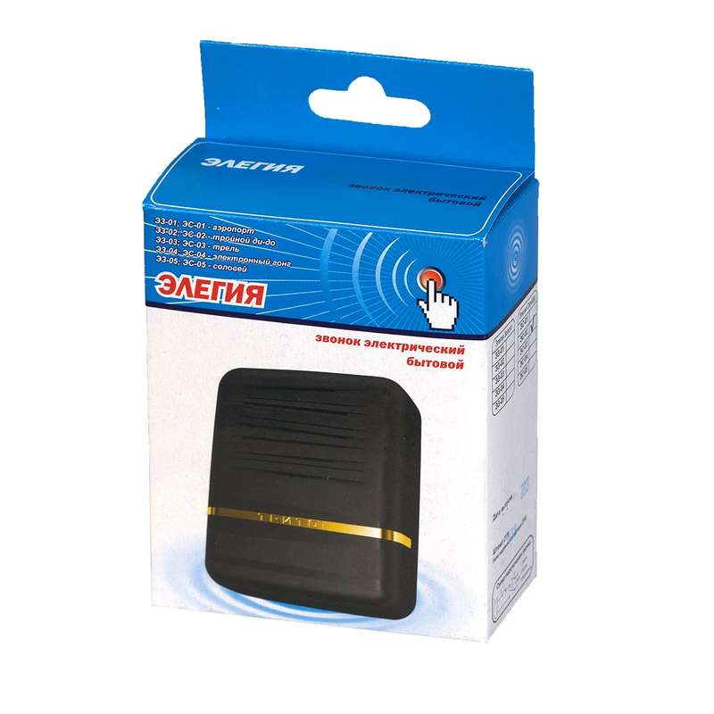 • НАЗНАЧЕНИЕ Звонки бытовые электронные предназначены для подачи сигнала оповещения. • ОБЛАСТЬ ПРИМЕНЕНИЯ Применяются в жилых и офисных помещениях для оповещения присутствующих. Наиболее распространены в жилых многоквартирных домах в индивидуальных квартирах в качестве устройства оповещения о прибытии посетителя. • ПРИНЦИП ДЕЙСТВИЯ Оповещение производится путем нажатия на вынесенную за пределы оповещаемой территории кнопку, соединенную с основным устройством проводной или беспроводной связью. В зависимости от этого звонки бытовые электронные подразделяются на проводные и беспроводные. Подача сигнала основным устройством осуществляется проигрыванием мелодии. Питание устройства и кнопки в зависимости от конкретного устройства осуществляется от заменяемых элементов питания или бытовой электросети 220 В. Конструкция основного устройства основана на полупроводниковой схеме, генерирующей различные звуки и мелодии. Отдельные устройства допускают проигрывание в качестве звукового сигнала музыкального файла в формате mp3 с внешнего носителя информации. • ДОПОЛНИТЕЛЬНЫЕ ПРИНАДЛЕЖНОСТИ ИЛИ АКСЕССУАРЫ В стандартной комплектации, как правило, имеется основное устройство, подающее сигнал оповещения, а также кнопка для дистанционной установки. В зависимости от конкретного устройства возможно наличие в стандартном комплекте поставки элементов питания.
