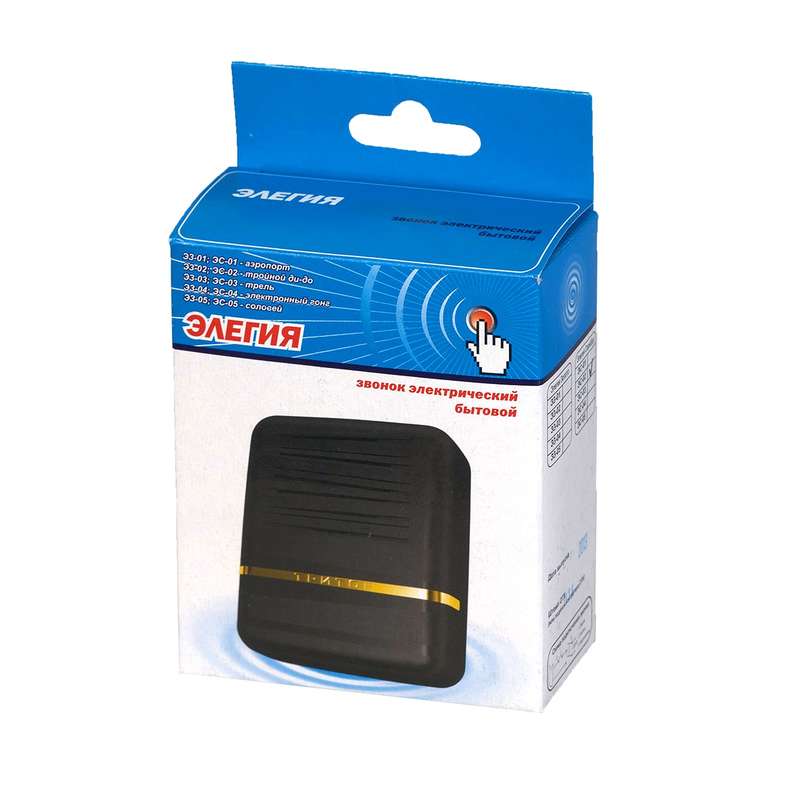 • НАЗНАЧЕНИЕ Звонки бытовые электронные предназначены для подачи сигнала оповещения. • ОБЛАСТЬ ПРИМЕНЕНИЯ Применяются в жилых и офисных помещениях для оповещения присутствующих. Наиболее распространены в жилых многоквартирных домах в индивидуальных квартирах в качестве устройства оповещения о прибытии посетителя. • ПРИНЦИП ДЕЙСТВИЯ Оповещение производится путем нажатия на вынесенную за пределы оповещаемой территории кнопку, соединенную с основным устройством проводной или беспроводной связью. В зависимости от этого звонки бытовые электронные подразделяются на проводные и беспроводные. Подача сигнала основным устройством осуществляется проигрыванием мелодии. Питание устройства и кнопки в зависимости от конкретного устройства осуществляется от заменяемых элементов питания или бытовой электросети 220 В. Конструкция основного устройства основана на полупроводниковой схеме, генерирующей различные звуки и мелодии. Отдельные устройства допускают проигрывание в качестве звукового сигнала музыкального файла в формате mp3 с внешнего носителя информации. • ДОПОЛНИТЕЛЬНЫЕ ПРИНАДЛЕЖНОСТИ ИЛИ АКСЕССУАРЫ В стандартной комплектации, как правило, имеется основное устройство, подающее сигнал оповещения, а также кнопка для дистанционной установки. В зависимости от конкретного устройства возможно наличие в стандартном комплекте поставки элементов питания.